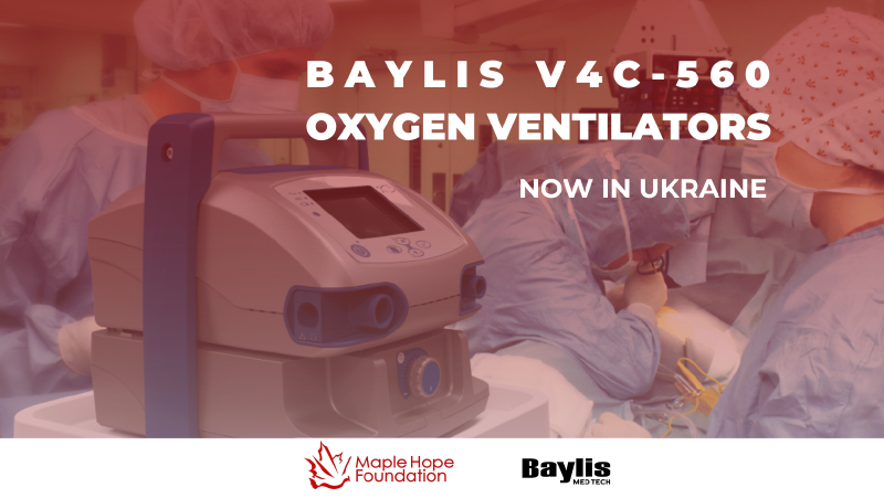 The donation of 100 Baylis V4C-560 Ventilators, equipped with the V4C-O2E Oxygen Mixer for Ukrainian hospitals.